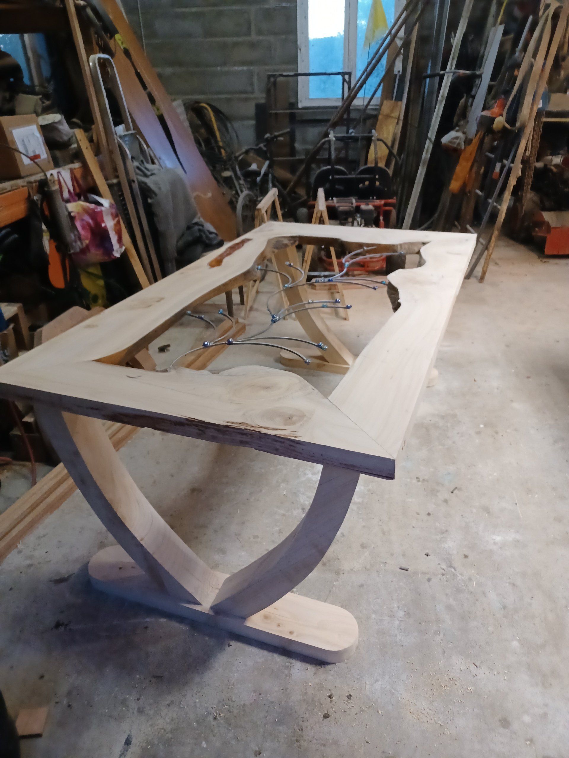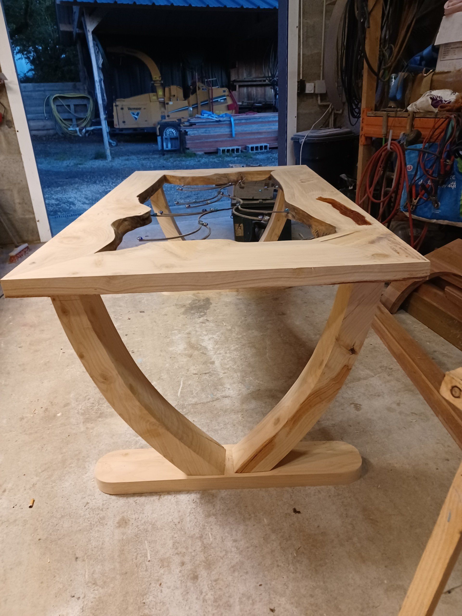 Création d'une table bois massif en cours de réalisation à l'atelier 3/3
